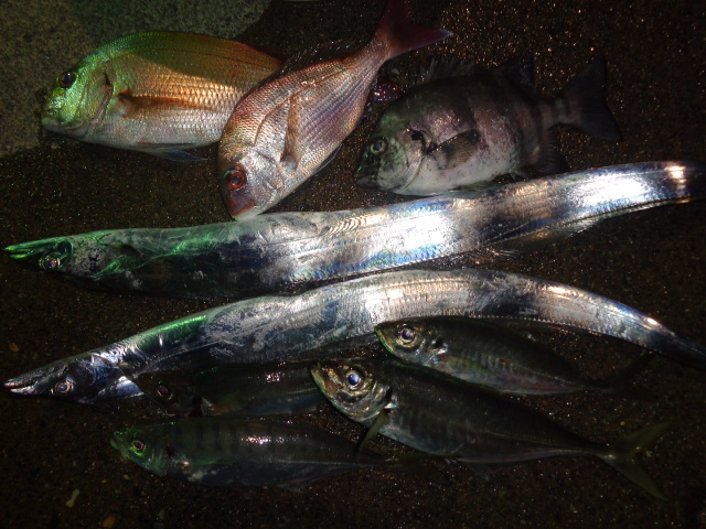タチウオ 2尾、チカメキントキ 2尾、アジ 16尾、イシダイ 1尾、