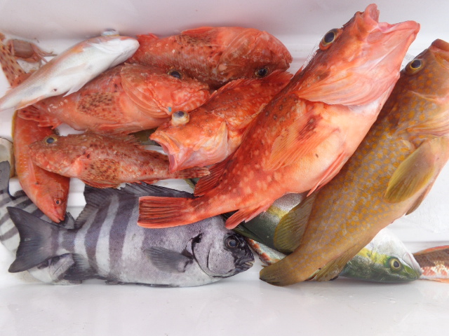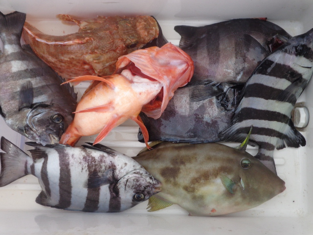ウマズラ 1尾、キジハタ 1尾、レンコ 1尾、