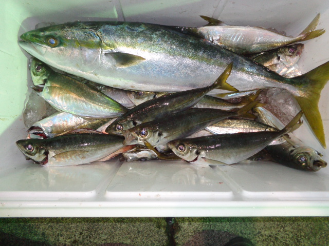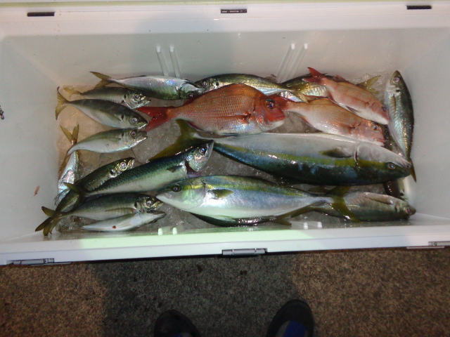 ワラサ 4尾、イナダ 4尾、アジ 51尾、マダイ 6尾、