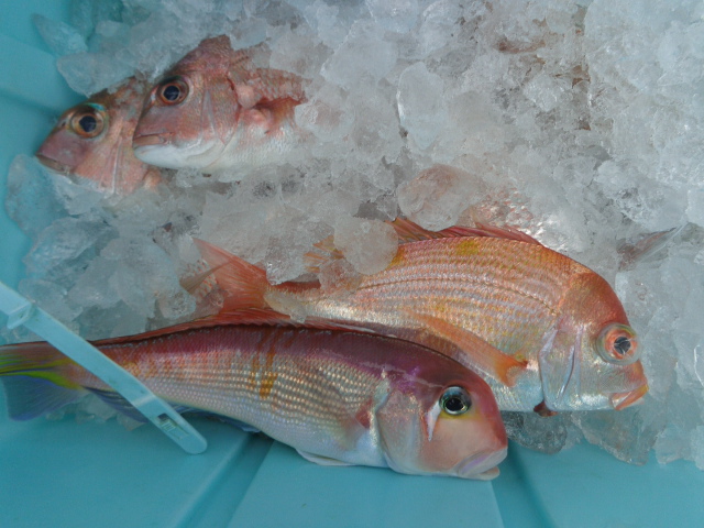 ワラサ 5尾、マダイ 15尾、イナダ 5尾、キジハタ 1尾、