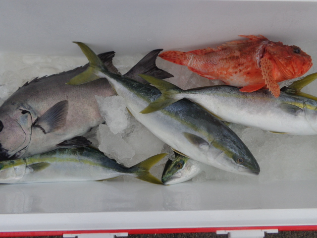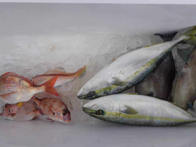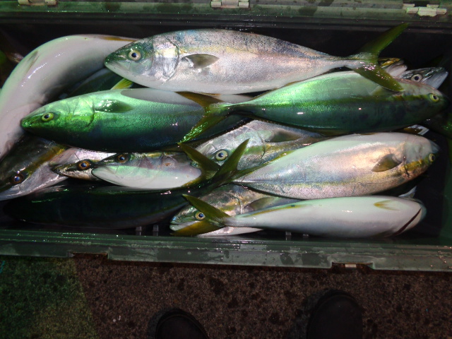 28日夜便:イナダ~イナワラがクーラーBOX満タンで早上がり イナワラ・イナダ・サワラ・・ 29日朝便:アマダイ~イナダ・・イルカの大群到来で不調・・ アマダイ・イナダ・オニカサゴ・イシダイ・マダイ・ウマズラ・・