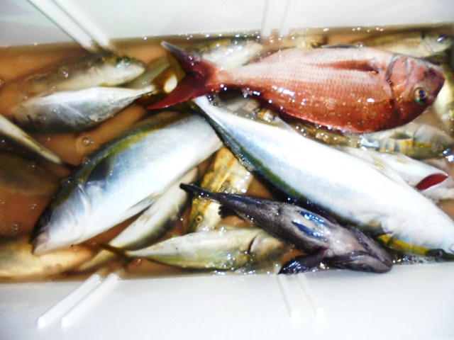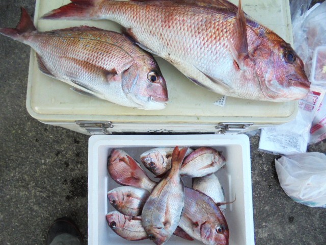 マダイ小 4尾 ワラサ 3尾、メジナ 1尾、ウマヅラ 2尾、