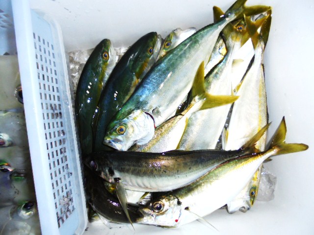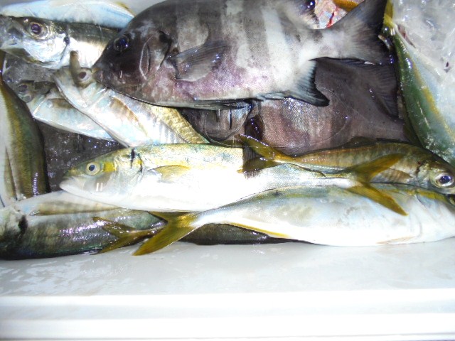 タチウオ 1尾、ウマヅラ 4尾、アジ 3尾
