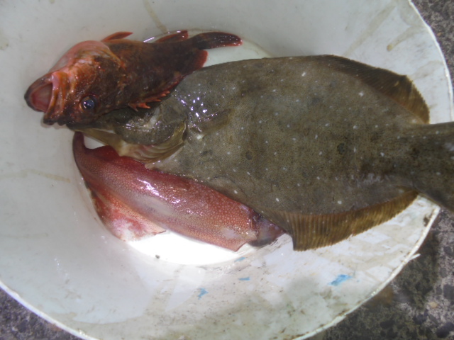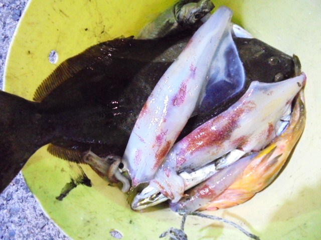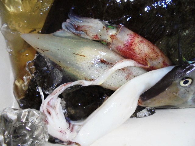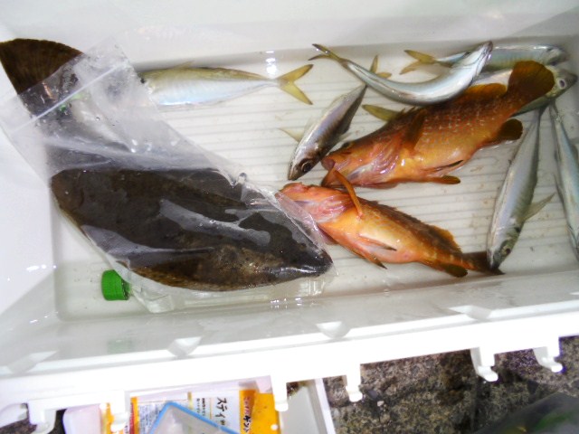 アカイカ 24ハイ、ヒラメ 9尾、キジハタ 8尾、