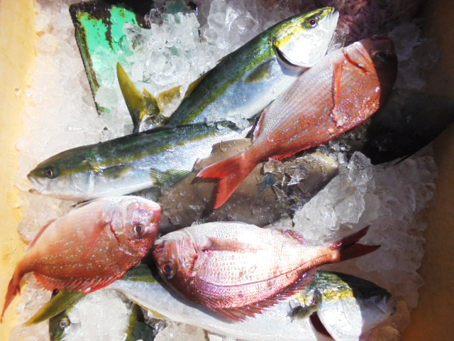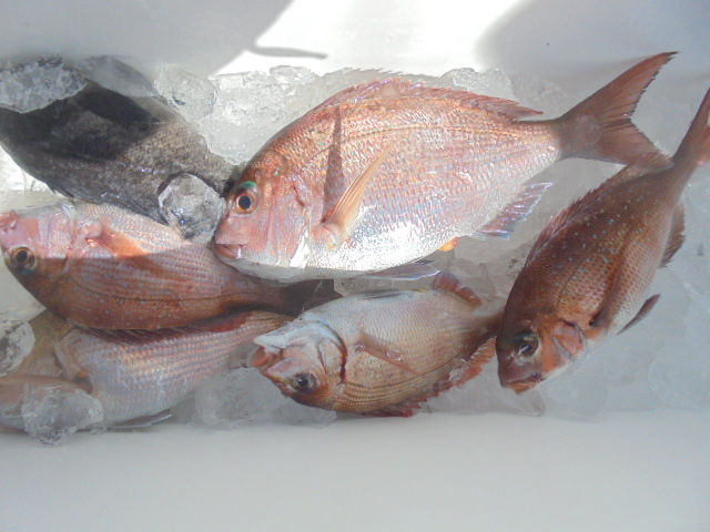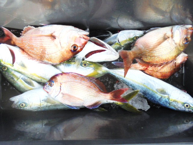 マダイ 手の平~0.8kg 11尾、イナダ 数匹