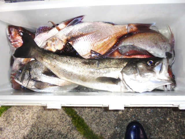 マダイ 29尾、ヒラメ 8尾、クロダイ 2尾 イナダ 1尾、