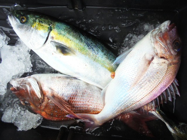 マダイ0.8~3.2kg 5尾、他にイナワラ、イナダ