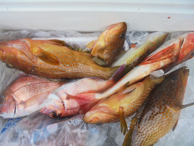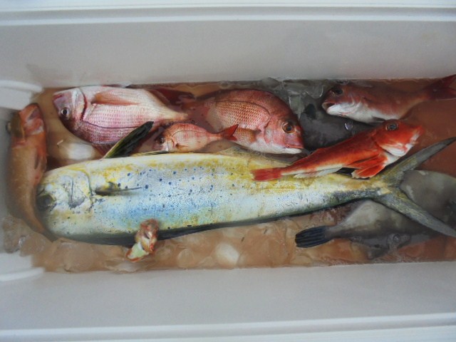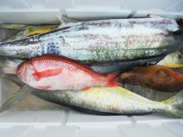 シイラ 1尾、キジハタ 3尾、レンコ 4尾、
