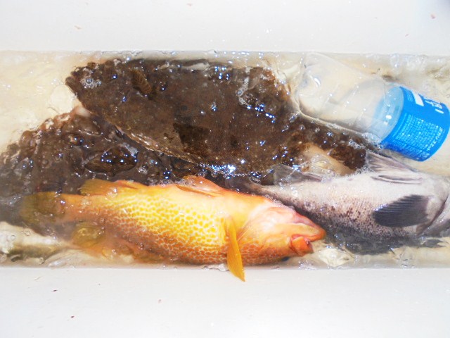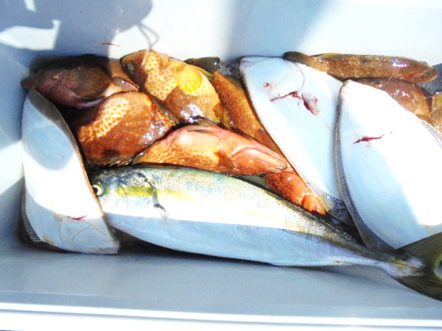 キジハタ 12尾、ヒラメ 1尾、ワカシ 4尾、