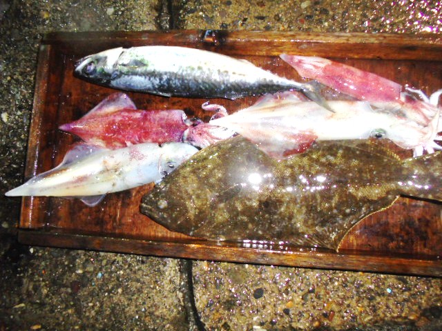 ヒラメ 2尾、アオリイカ大 1ハイ、アジ 多数、
