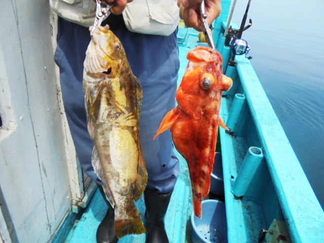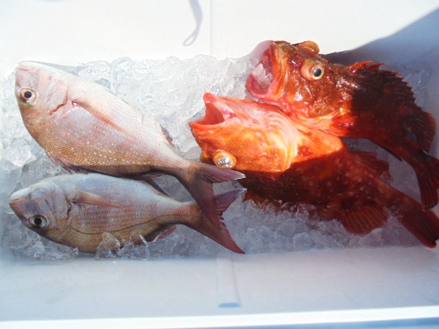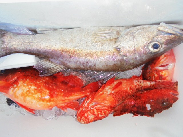 ソイ 1.8kg 1尾、マトウダイ 1尾、イソメバル 2尾、
