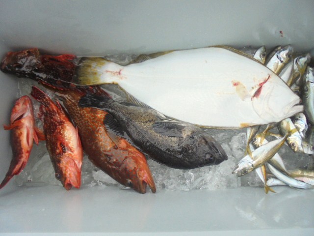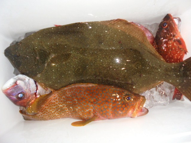 ヒラメ 2kg 1尾、キジハタ 3尾、