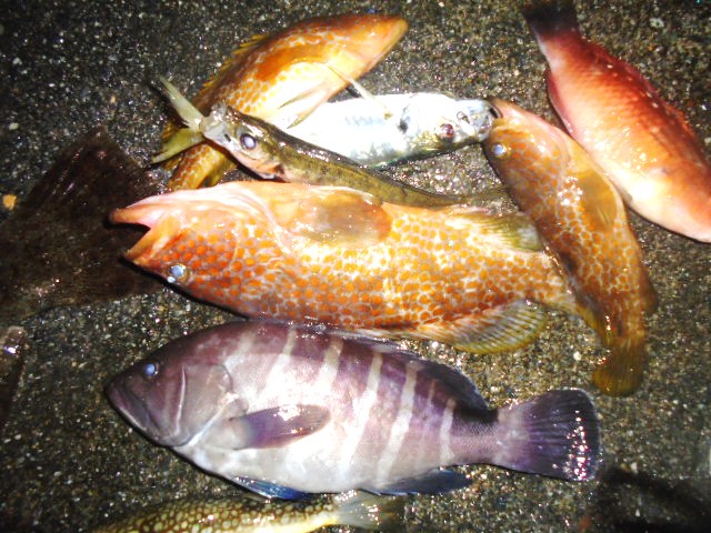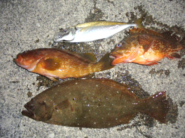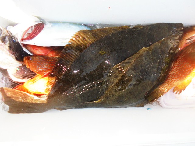 ヒラメ 1尾、キジハタ 2尾、カサゴ 2尾、