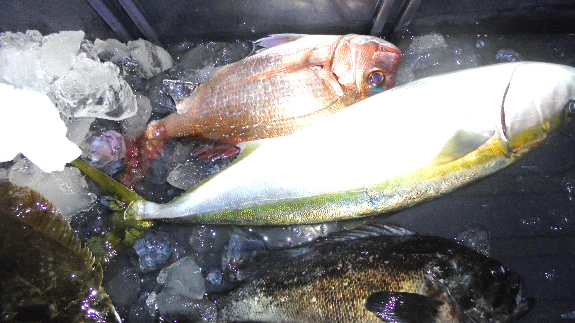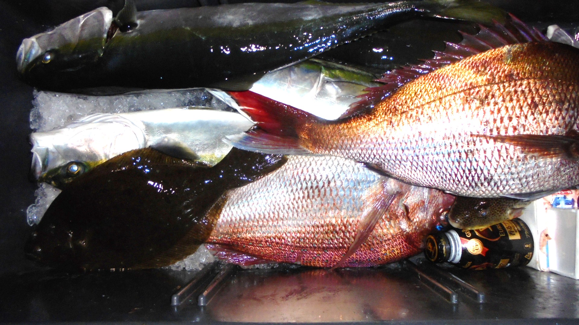 マダイ 24尾、ヒラメ 5尾、イナワラ 13尾、