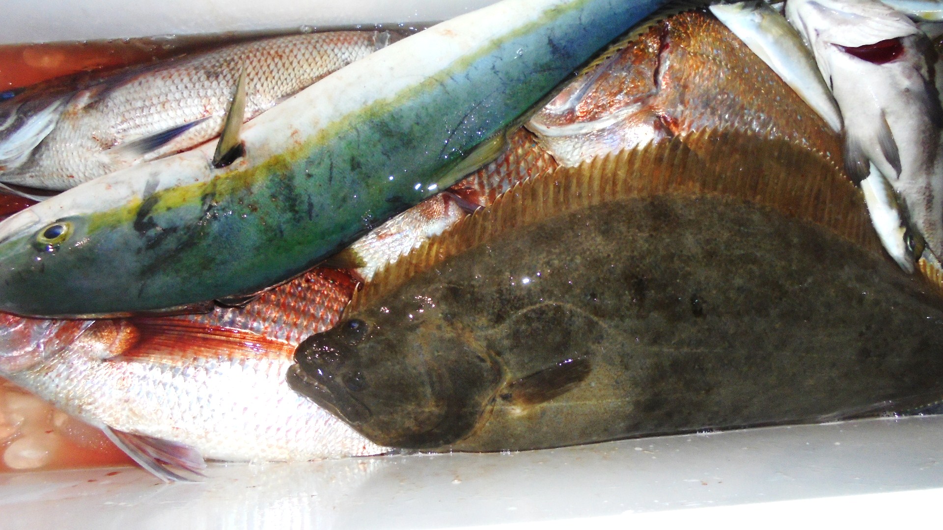 ヒラメ 5尾、マゴチ 1尾、キジハタ 1尾、