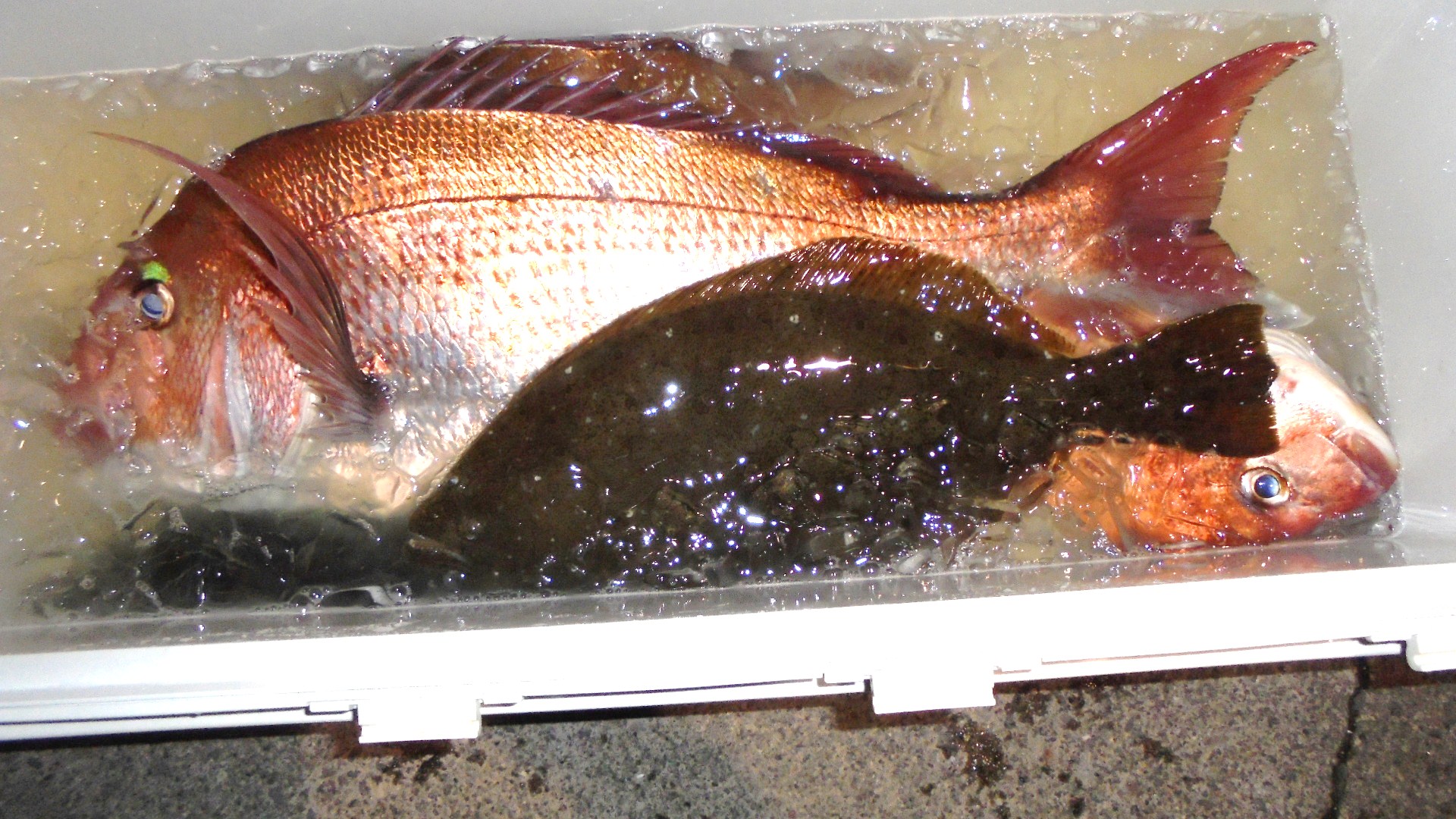 14日夜便:マダイ・ヒラメ釣行・・夕方ほマダイが